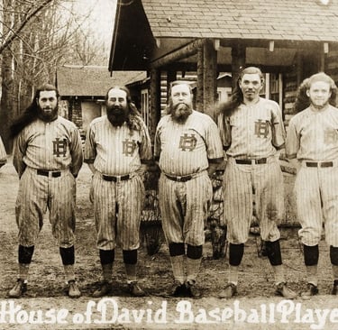 Benjamin Purnell along with his wife Mary, established The Israelite House of David, a religious community, in Benton Harbor, Michigan, in 1903. Evidently the sect believed that it could gather the 12 lost tribes of Israel which would lead to an event called the "Ingathering" a signal of the Millennium in the year 2000 (we missed that folks) with a return of Jesus. Church men were required to have long hair and beards because the book of Leviticus makes reference to the growth of hair congruent with the growth of one’s soul.