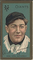 Giants Manager John McGraw was confident he could curtail Raymond from his alcohol usage. McGraw gave him pocket money only and paid his salary directly to his wife, who did not send money to her husband. McGraw also paid a detective to trail Bugs to keep him out of bars but unfortunately nothing seemed to work. Evidently, Bugs had enough as well as he quit the team before the end of the 1909 season missing out on the chance to win 20 games.